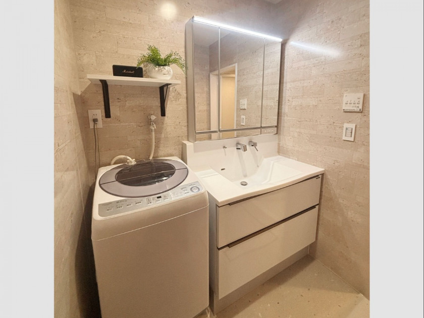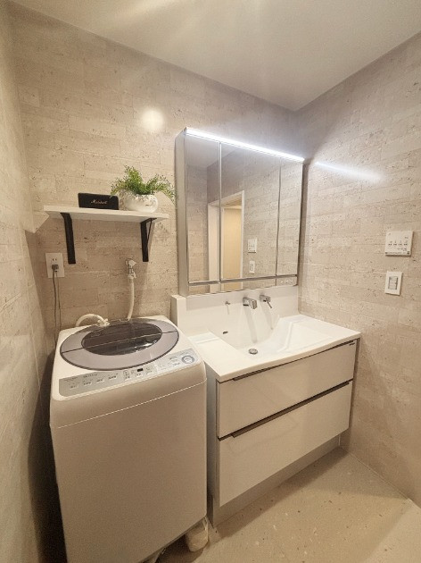 洗濯機と洗面台を左右入れ替えて、使い勝手を良くしました。