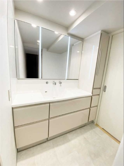 洗面台は既存の間口にピッタリ収める為に仕様を変更したり、サイドキャビネットのサイズと全体的なバランスを踏まえての工事となりました。