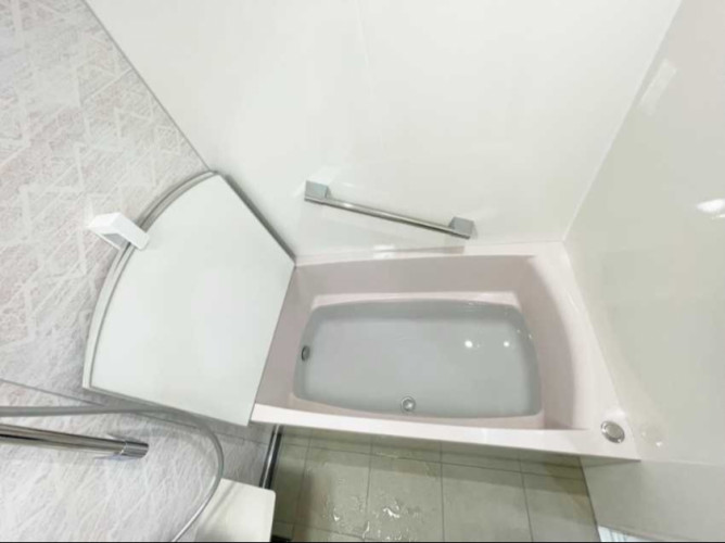 淡いピンク×グレーの可愛いお風呂へリフォーム