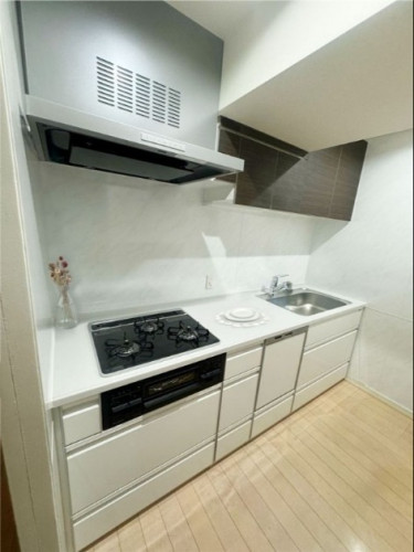 2400mmのキッチンを入れる為、壁を一度壊して作り直し、キッチンが入るよう対応させていただきました。