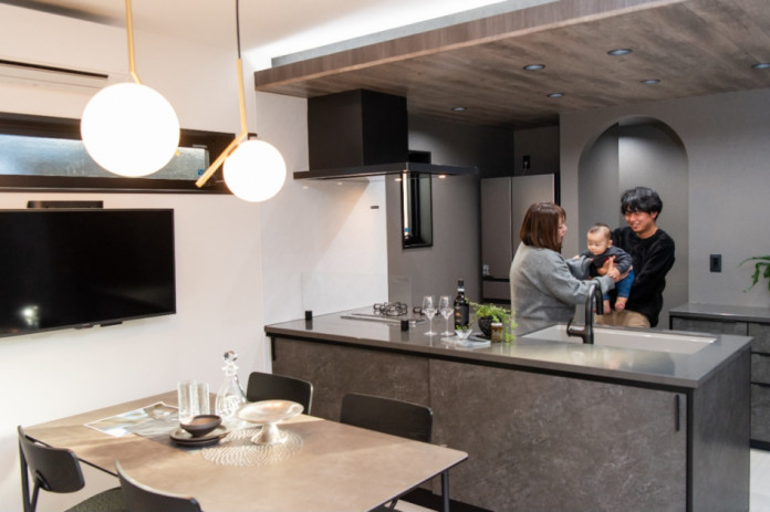 祖母から受け継いだ家を、子どもの誕生をきっかけに家族の理想の住まいへ。アイランドキッチンと背面の大容量パントリーで効率的な家事動線を実現し、料理をしながら家族と会話でき、片付けもスムーズに。キッチンからリビング・ダイニングを見渡せる設計は、家族とのつながりを大切にしながら安心して家事ができる空間を生み出しました。さらに収納力を高めることで家事効率が大幅にアップ。折上げ天井や間接照明でホテルライクな上質感も演出し、デザイン性と快適性、そして家事らくを兼ね備えた理想のLDKとなりました。