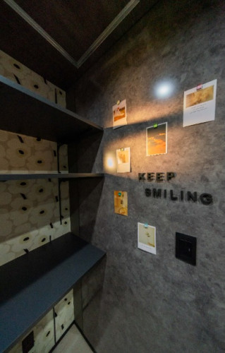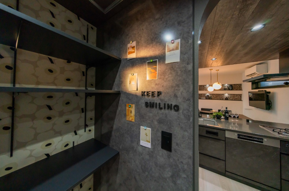 貼る“量”ではなく“魅せ方”にこだわり、あえて余白を活かしてギャラリーのようにコーディネート。選び抜いた写真や言葉をシンプルに飾ることで、日常にアートを取り込みながら、空間全体に都会的な洗練をプラスしました。さらに、季節ごとにアートを入れ替えることで、日々の暮らしにさりげない彩りと新鮮さを感じられる空間となっています。