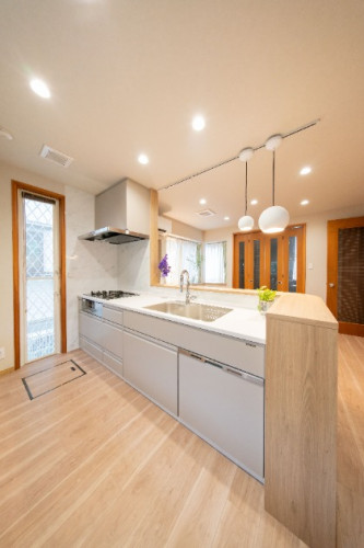 閉鎖的だった空間を一新し、光あふれる開放的な対面キッチンに。調理しながら家族と会話を楽しめる、心地よい暮らしの舞台となりました。