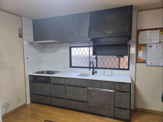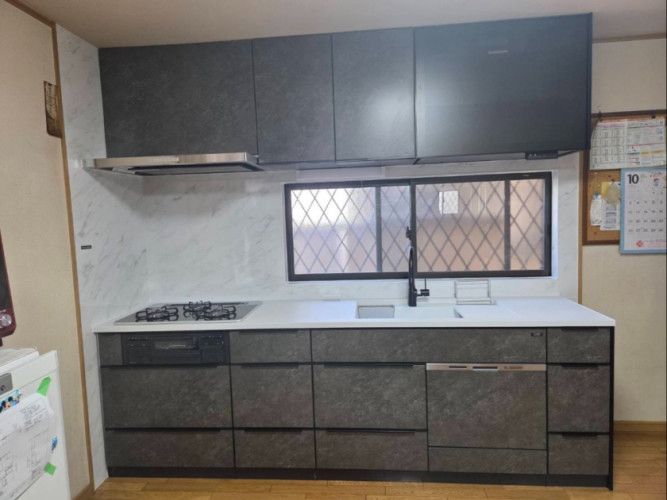 現在使用しているキッチンにビルトイン乾燥機が付いているが故障し修理も出来ない事がリフォームのきっかけになった。6人家族で料理する機会も多く、この際最新の快適なキッチンに変更しようとタカラのショールームに。業者さんもショールーム来場に同行、快適リフォームのアドバイスをして貰った。家族も多く、食器洗い乾燥機は600mmのワイドタイプを選択、電動昇降吊戸棚もチョイス。