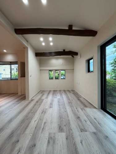 古い梁の趣を活かしながら、ひとつながりのLDK空間へと仕上げました。