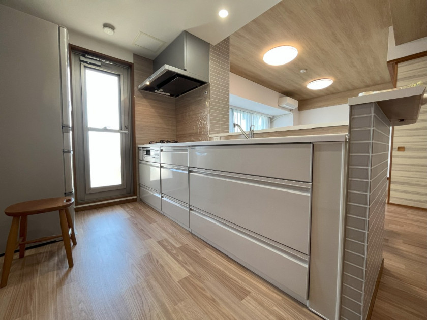 選んだのは「トレーシア」。デザイン性と耐久性にすぐれた上質なキッチンで、空間全体がぐっと洗練された印象に。収納力も見直し、見た目だけでなく機能面も大きくグレードアップ!心地いいキッチンに生まれ変わりました。