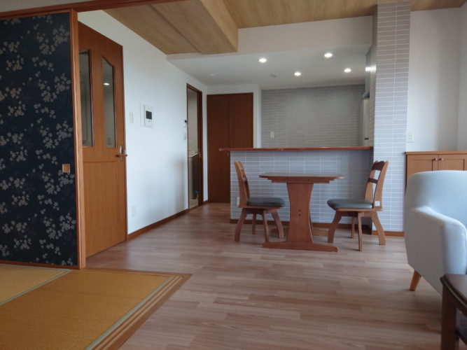 和室の壁を一部取り払い、LDKと一体になったことで、自然の光が入り広々空間へと変化しました。