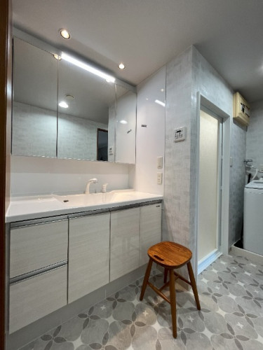広さはそのままに、収納力や機能性がぐんとアップ!限られた空間にも無駄なくフィットするのが魅力の1つでもある「リジャスト」。壁面までしっかり活用した収納や、ホーロー素材の高い耐久性もうれしいポイントです。使いやすさと清掃性が格段にアップした洗面空間に生まれ変わりました。