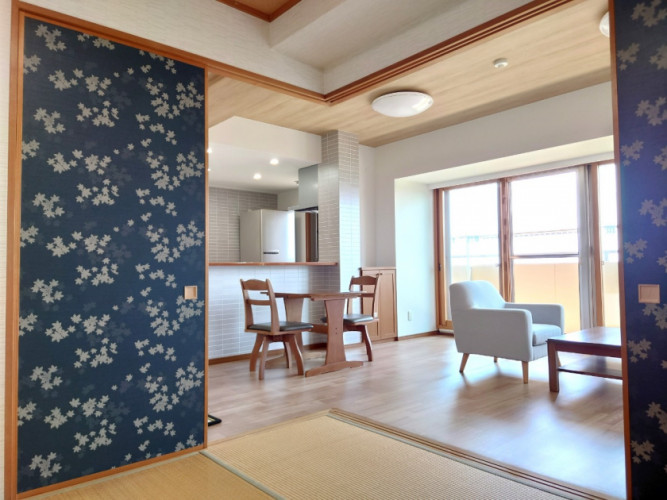 LDKと洋室の断熱窓内窓の設置、壁と天井のクロス貼替、和室襖の貼替などを行いました。