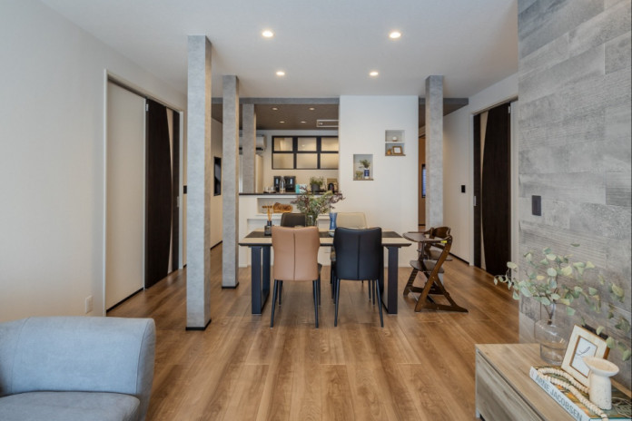 一日の大半はLDKで過ごすことになるとのことで、ゆったりと過ごすだけでなく、収納スペースの確保、無駄のない動線かつスタイリッシュにを、考えて提案しました。