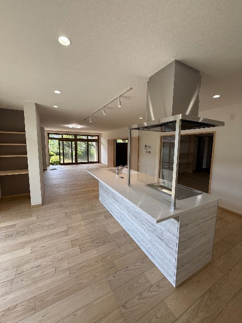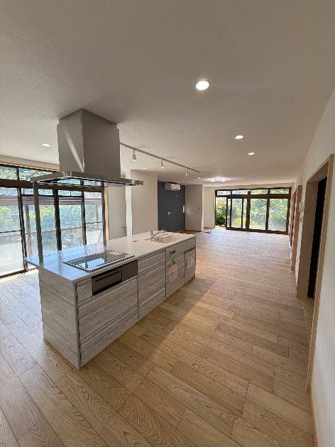 古いキッチンを解体し、隣の広い部屋へ移動することで、空間は明るく広々と生まれ変わりました。