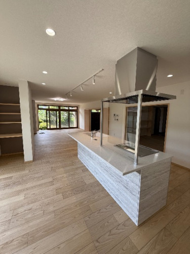 隣の部屋から移したキッチンが家族の真ん中に、換気扇からリビングに広がる料理の匂いに、自然と家族が集まる喜びを、ひしひしと感じておりますとお客様から頂きました。