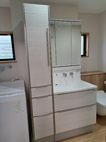 念願の対面キッチン、洗面所内にトイレを設置し一体化することで、小さい孫たちも怖がらずにトイレに行くことが出来ました。
