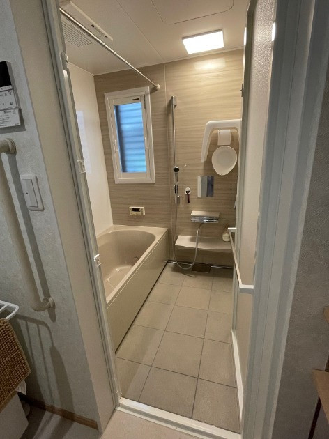 ユニットバスではありましたが、出入り口に段差があり、換気扇は無い仕様の建てた当時からの浴室であったため暖房機乾燥機付きの換気扇がビルトインされ、出入り口の段差もない新しい
