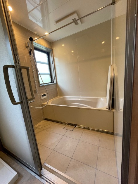 在来工法の浴室であったため、バリアフリーで、暖房機能も装着し、清掃性の良いシステムバスルームにとりかえました。窓は既存のままを利用しています。