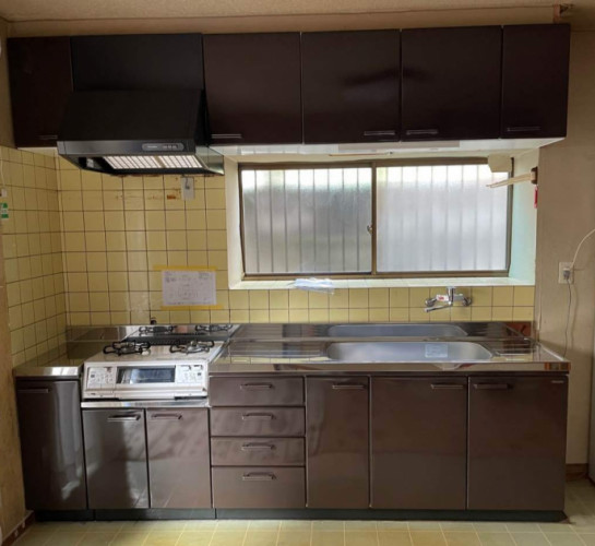 清潔なホーローキッチンに交換し、ついでに天井、壁、床も
