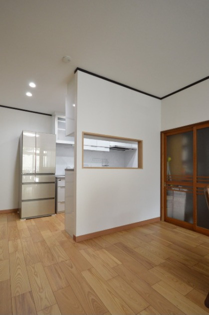 キッチンが丸見えになるのも嫌だし、調理中に孤独になると寂しいし・・と奥様のご要望を伺いながら、”ちょうど良い”開口位置を打合せしました。