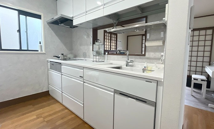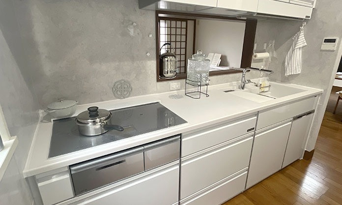 カウンターの高さも調整し、家具や家電も白で統一。収納力とデザイン性が両立したキッチンで、毎日の料理がさらに快適で心地よい時間になりました。