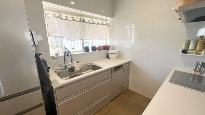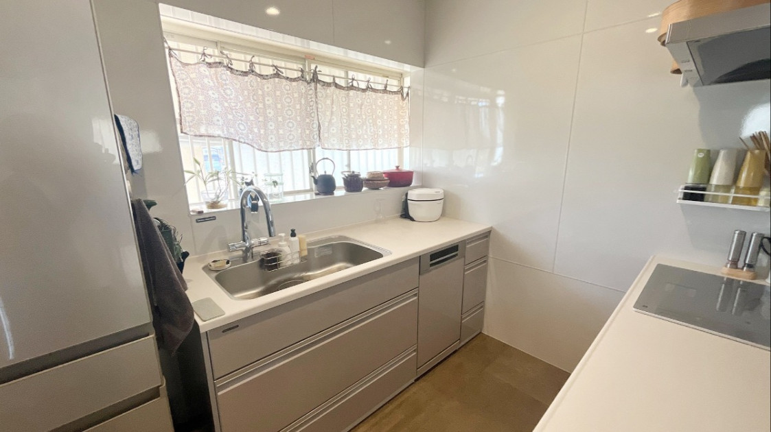 窓側にシンクと作業台をまとめ、向かいにIHと広い作業スペースを設けたことで、見通しの良い並列配置に。動線がスムーズになり、作業のしやすさが格段にアップしました。
