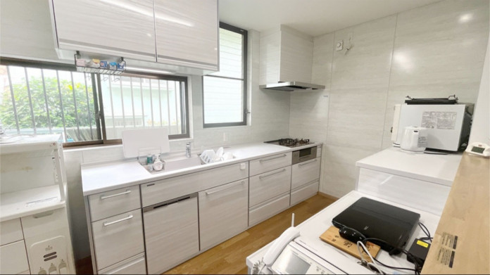 カウンター側に向かってL字に配置していたキッチンを窓側に移動させて、窓からの光をたっぷり取り入れられるようにしました。