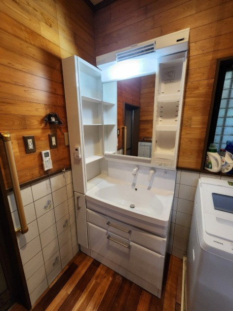 今回は洗面化粧台の入替えに伴うリフォームをさせて頂きました。既存の洗面台は木製という事もあり、経年劣化で傷んでおりました。