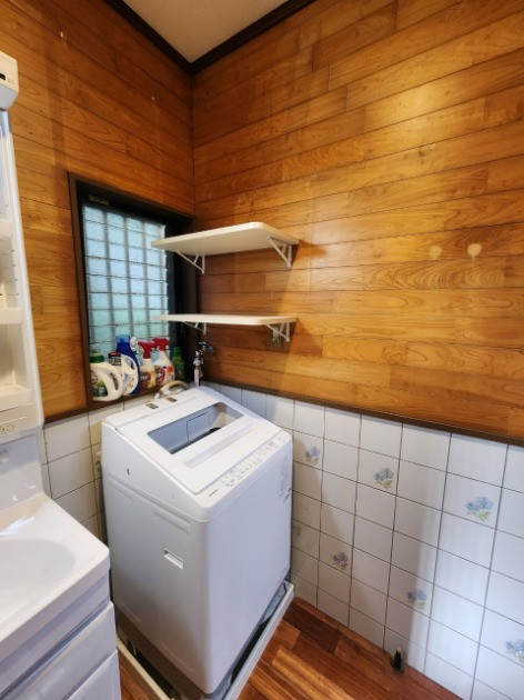 洗濯機の上部には、以前収納がありましたが、扉があり、中に何が入っているか分からなくなり使い勝手が悪かった為、棚を設置させて頂きました。