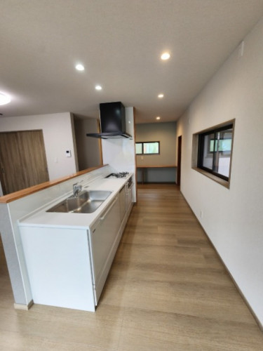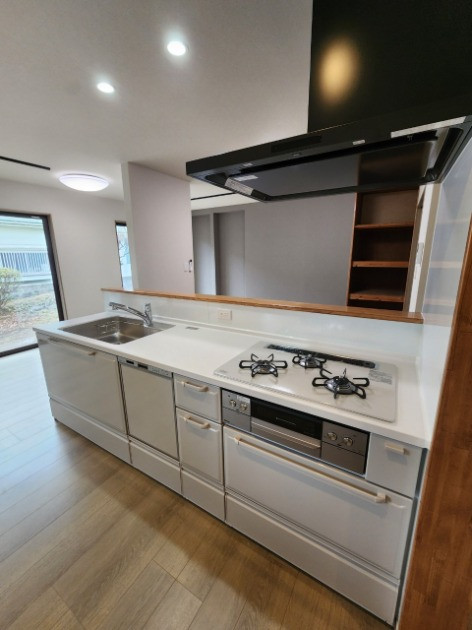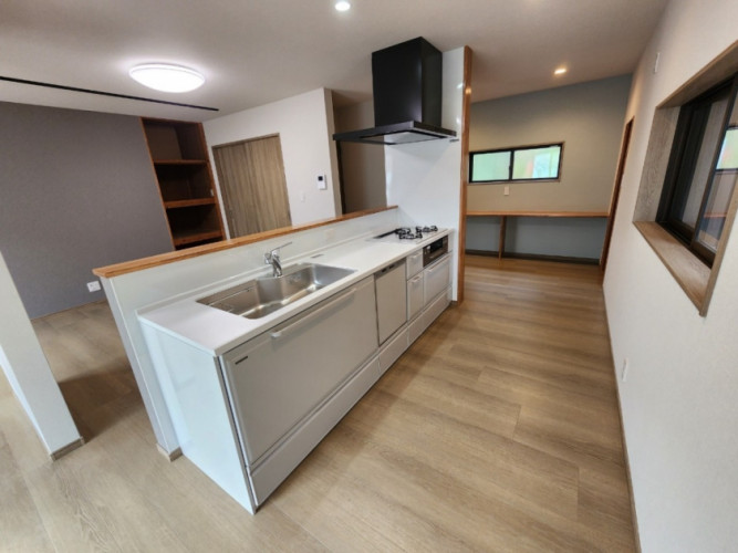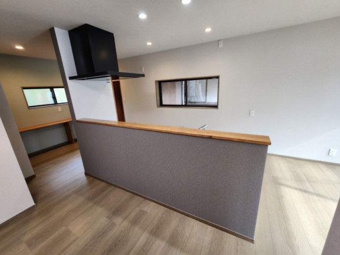 使いやすい対面キッチン!キッチンに居て目が届く場所に子供さんの勉強スペースを配置