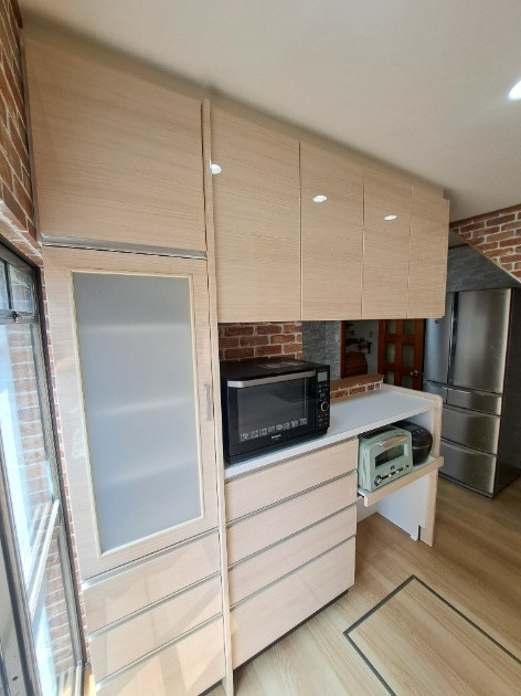 カップボードの設置により収納量も確保され、施主様からは「片付けが楽になり、家事が快適に」とのお声をいただいています。