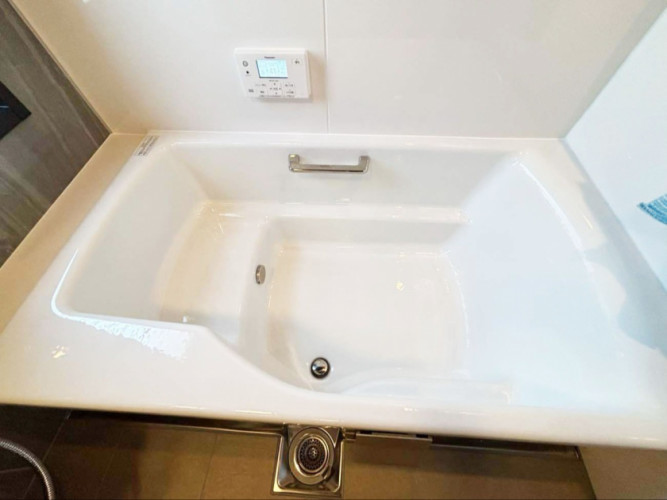 浴槽の幅が通常よりも広めでゆったりサイズなのでお孫さんと入るも良し、入浴姿勢、浸かり方も幅広く楽しむことができます。ベンチ付きで腰を掛けて休憩したり入浴サポートもしやすいです。