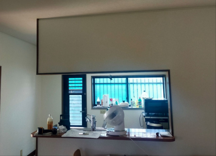 せっかくなので、キッチンだけでなく、キッチンの延長線上にあるリビングの壁紙も張り替えたのでスッキリ明るい印象になりました。