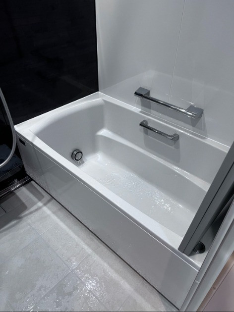既存のお風呂は床と浴槽の側面がタイル貼り。浴室に入ったときに、ヒヤっと冷たい印象があるのと、長年積み重なった汚れやカビが奥様の悩みのたねでした。そのせいかかなりゴシゴシ掃除する派でいらしたので、キープクリーンフロアは我が家にピッタリ!と喜んでいただけました。気兼ねなく思いっきり掃除ができますし、とはいっても汚れは以前にお風呂から比べて数段つきにくくなっています。スルッと汚れが落ちていつもキレイ。汚れたときは気のすむまでこすり落とす、新しいバスルームでの新しい暮らしを楽しんでいただきたいです。