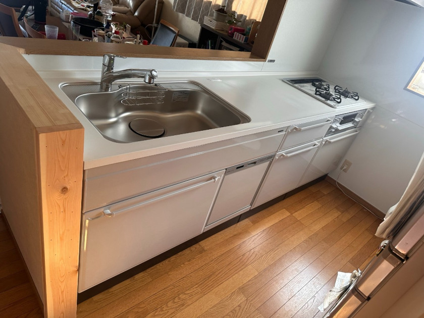 オプション:食洗器、ハンドシャワー水栓、ガラストップガスコンロ、人造大理石天板、キッチンパネル