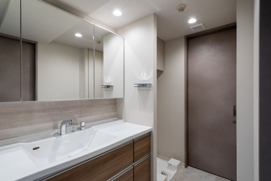 アクリル人造大理石のカウンターや、ホーロー素材の洗面パネルなど、機能性と耐久性に優れた素材を採用しています。