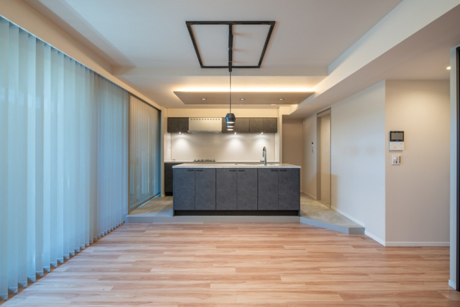 【大和市中央林間】アイランドキッチンが主役 洗練された空間に フルリノベーション