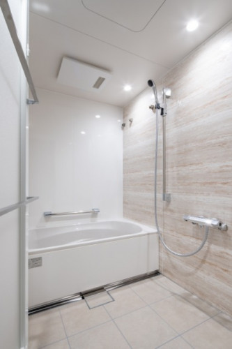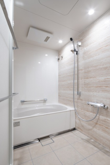 ユニットバスはタカラスタンダードのグランスパ。トレンドの大理石柄をアクセントパネルにすることで、高級感のあるバスタイムを演出します。