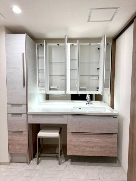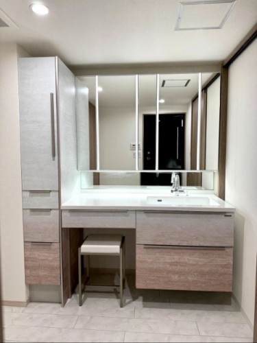 エリーナの広々した洗面台はドレッサータイプなので、お化粧する際もご家族の方と一緒にゆったりお使いいただけます。