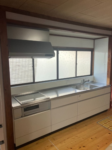 新築当時からのキッチンのため収納力はイマイチでしたが、タカラのシステムキッチンに替えて引き出し収納となり使いやすさと収納力がどちらもアップ!!