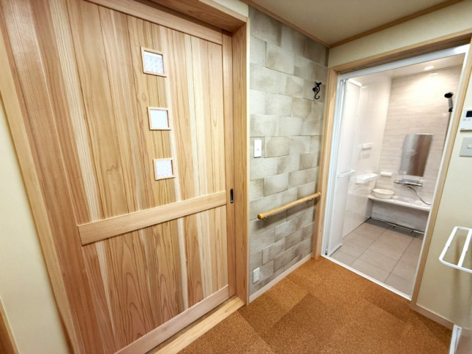 通常より広い1m幅なので、車いすでも楽に通れるバリアフリー対応。