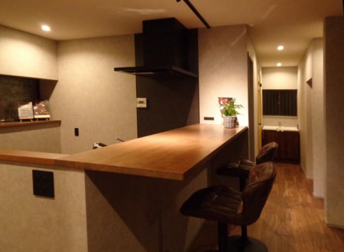 LDKに向かって対面させ、カウンターを造作してお酒も楽しめる空間にしました。