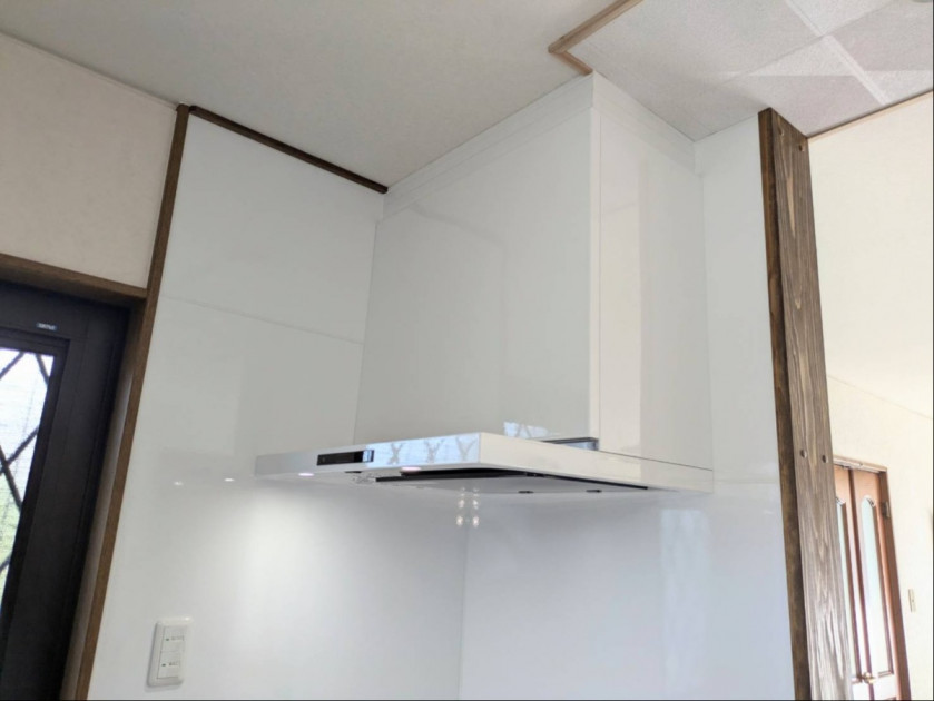 レンジフードの全面パネルもホワイト