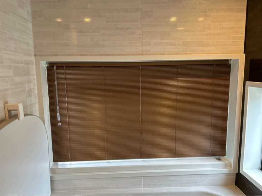 ブラウン色のブラインドを設置して落ち着いた雰囲気に