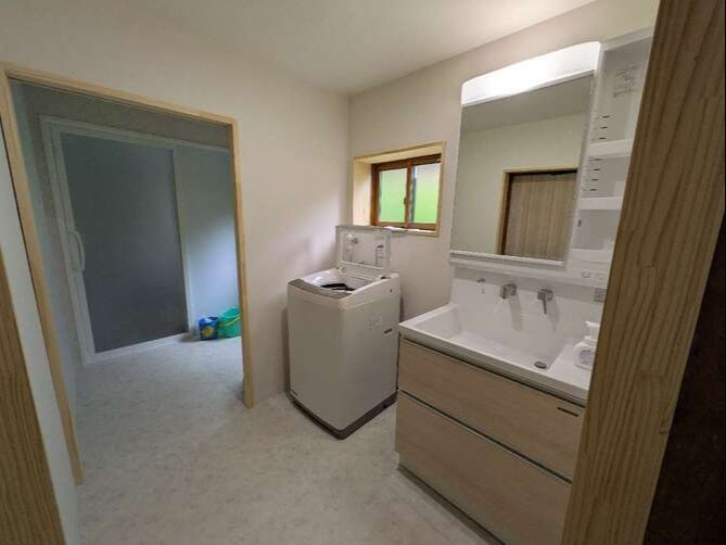 広すぎた脱衣室。洗面は廊下にあり、使いにくい動線