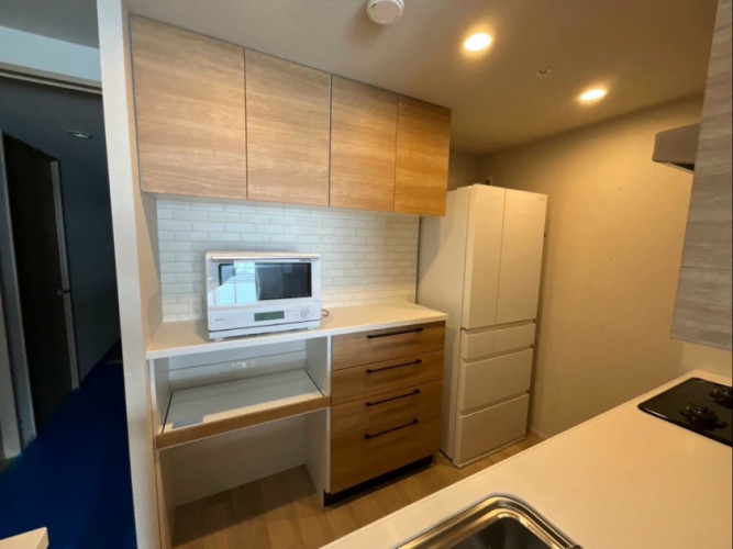 家電収納にはコンセントの電源を使用し、クロスも張り替えさせていただきました。