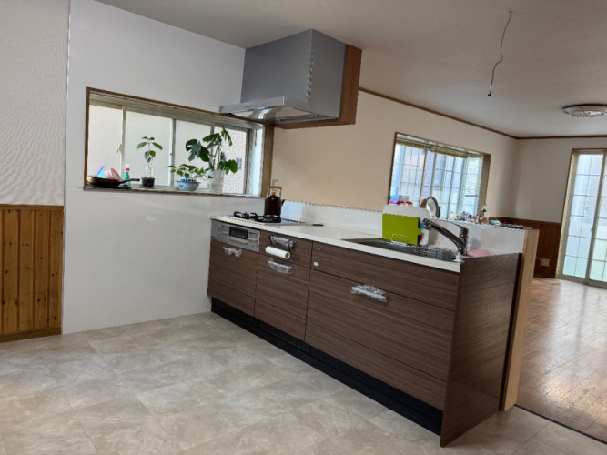 L型キッチンをI型キッチンに変更し、大きさも大きくしたことによって収納も増え、使い勝手が良くなりました。