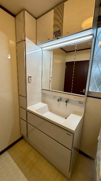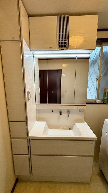 既設の洗面化粧台は90cmの製品が設置されておりましたが、