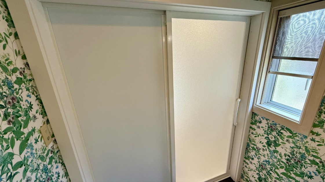 既設のものより一回り小さくした窓ですが、光が入り明るい空間はそのまま。ラグジュアリー感が増す様なデザインのパネルを選びました。