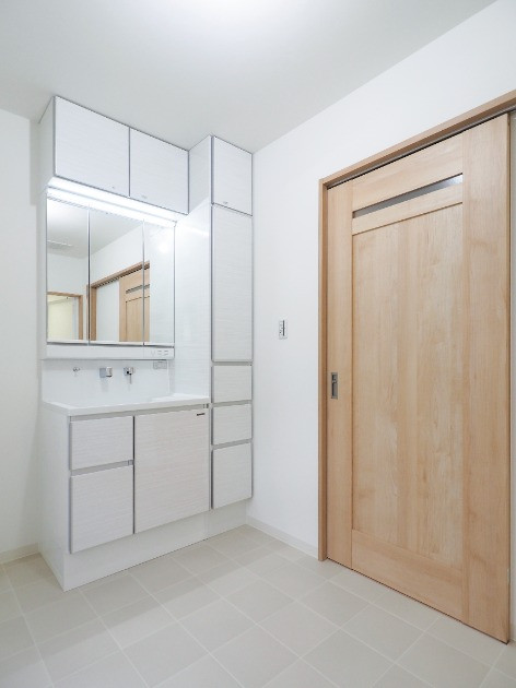 キャビネット付きで収納量たっぷりの洗面化粧台。