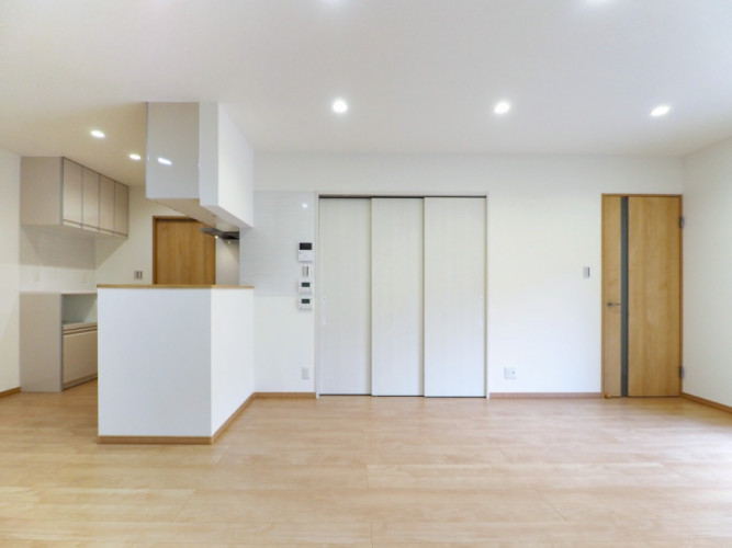 皆が集まれる明るいLDKになりました。階段下には大容量のパントリー兼収納を作り、使い勝手が良くなりました。