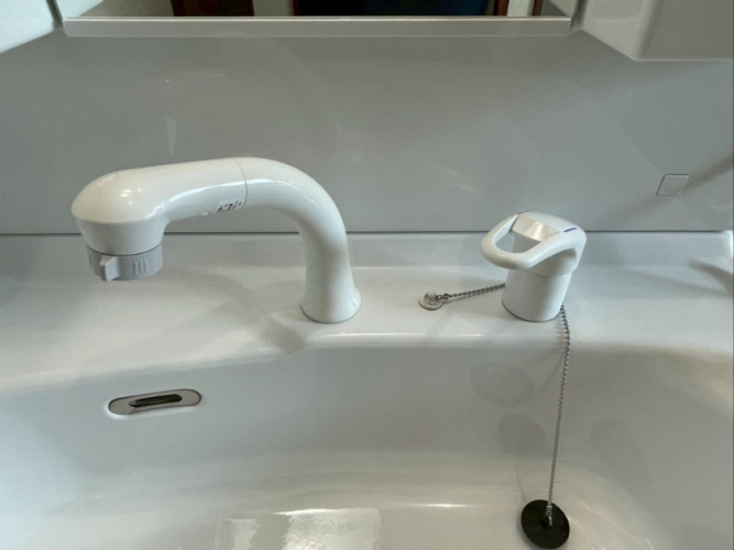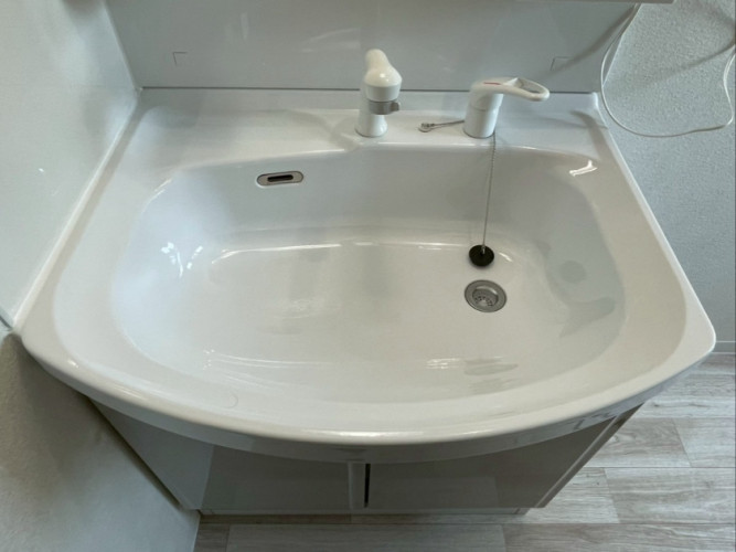 長年使用していた洗面化粧台は、水垢や黄ばみが目立っていました。