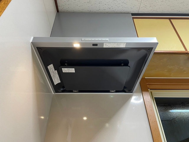 レンジフードのスイッチが故障し、給水管の劣化で水漏れが発生していました。